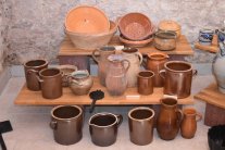 Unter den Exponaten finden sich interessante Stücke: „Milchhäbcher“, „Latwerchkrüge“, Käsesiebe, Entrahmschüssel, Topf zum Butterstoßen, „Beerenweinkrüge“, Kuchenformen.