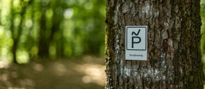 Der Preußensteig führt am Bade- und Freizeitpark Kusel vorbei in das Landschaftsschutzgebiet Holzbachtal.Hier findet man die ersten von vielen Grenzsteinen am Wegesrand. Die eingravierten Initialen „KB“ und „KP“ zeigen, wo man sich gerade befunden hätte, im Königreich Bayern oder im Königreich Preußen. Kilometerweit wird man von den alten massiven Steinquadern begleitet.